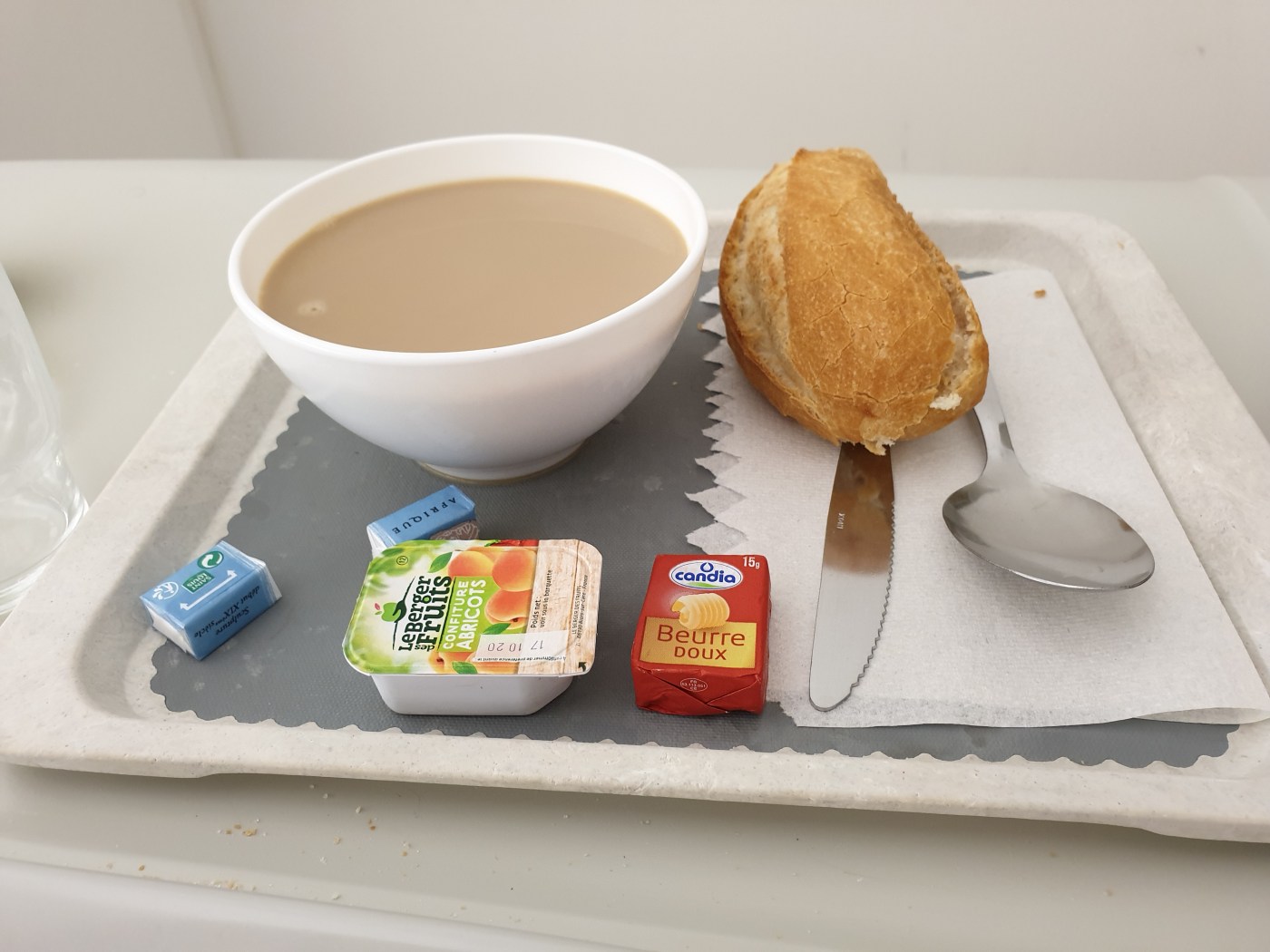 Verandering van spijs doet eten. Dat was het thema van mijn vorige blog, en dat had ik misschien beter anders kunnen doen.. Ik schreef die blog op vrijdag, en twee dagen erna kreeg ik dit ontbijt. Een Frans ontbijt, maar ook in een Frans ziekenhuis helaas…. Want onze vakantie, die tot dan toe zo ontzettend goed was verlopen, kreeg ineens een andere wending.