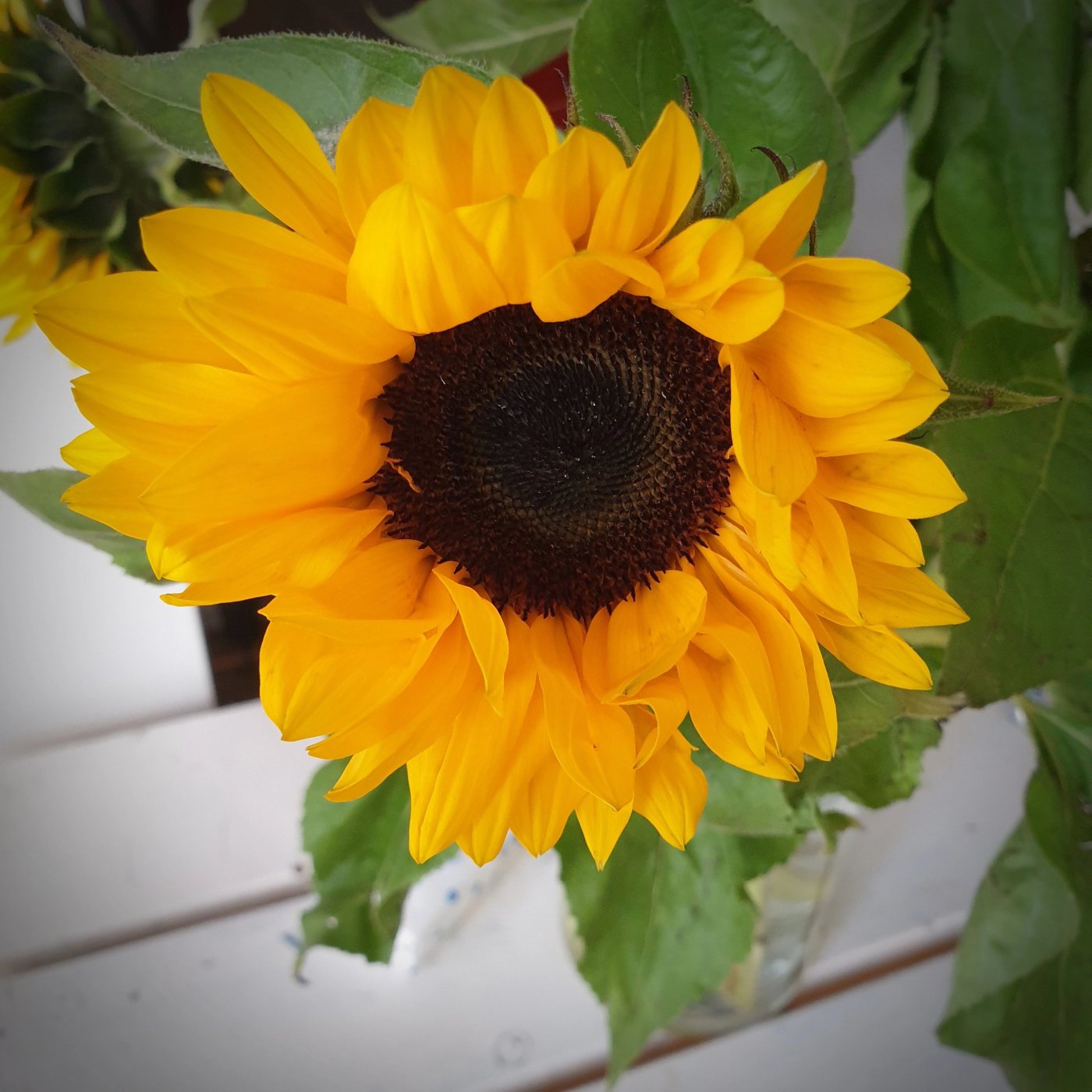 Dat je nu geniet van twee vazen met zonnebloemen.